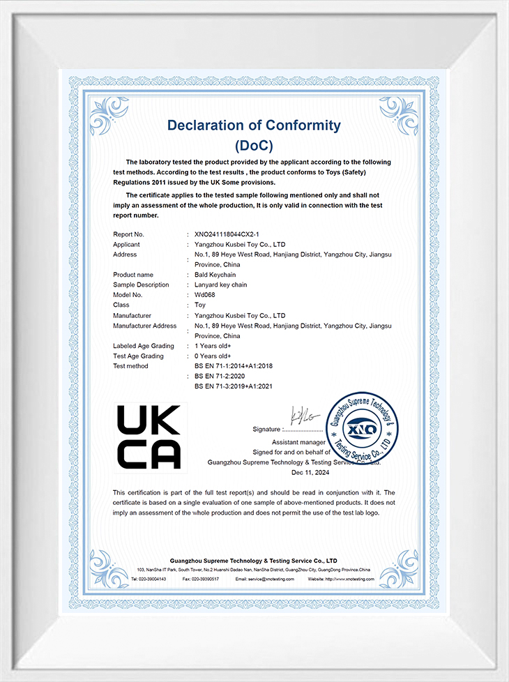 UKCA EN71, CE EN71, CPC, ISO 8124, etc.